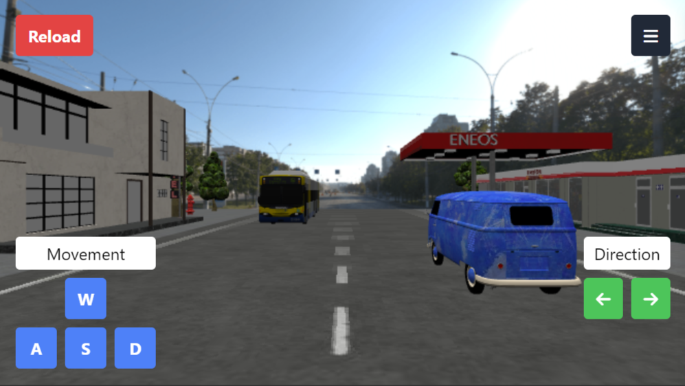 L'interfaccia grafica del progetto è stata sviluppata con l'obiettivo di garantire una fruizione ottimale sia su PC che su dispositivi mobili, offrendo un'esperienza d'uso intuitiva e coinvolgente. La struttura dell'interfaccia è suddivisa in piattaforma, tasti di movimento e impostazioni. Ciascuna dedicata a funzioni specifiche che permettono all'utente di interagire con il simulatore in modo personalizzato.
