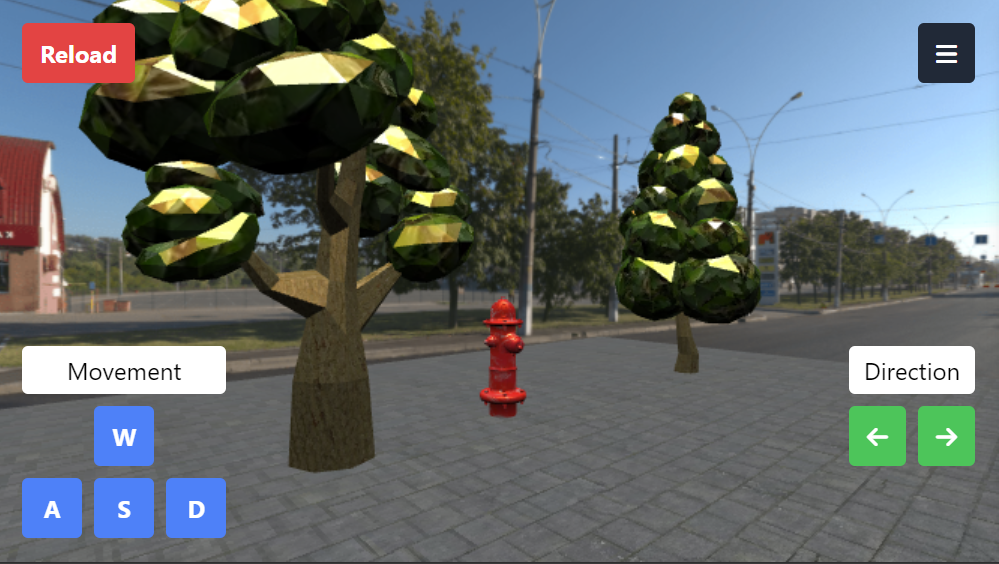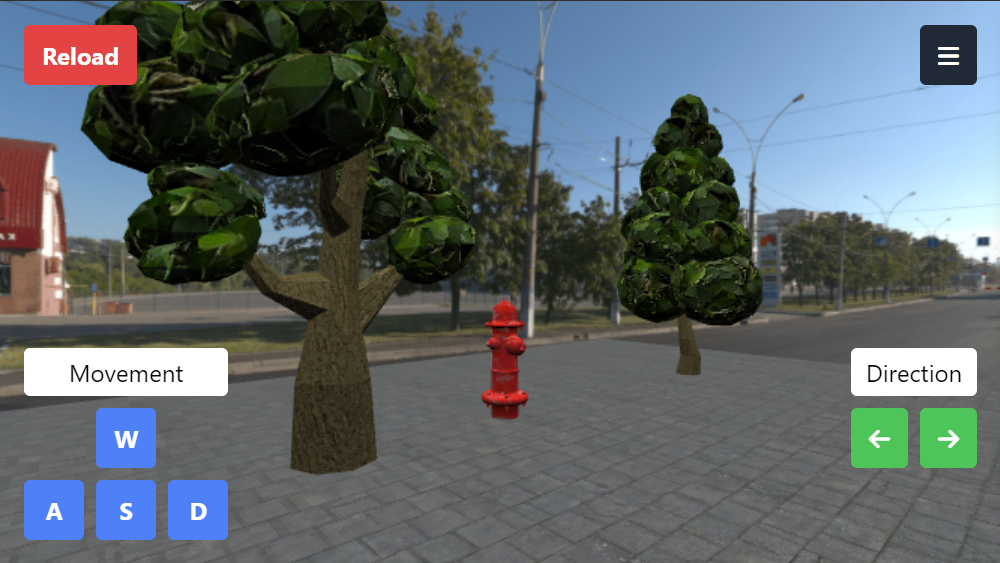 Sono disponibili vari controlli per l'interazione, inclusi pulsanti per la navigazione e le impostazioni, e un pannello per i controlli mobili. Le azioni come il movimento, la rotazione della telecamera e il reset della posizione dell'utente sono gestibili tramite comandi specifici.
