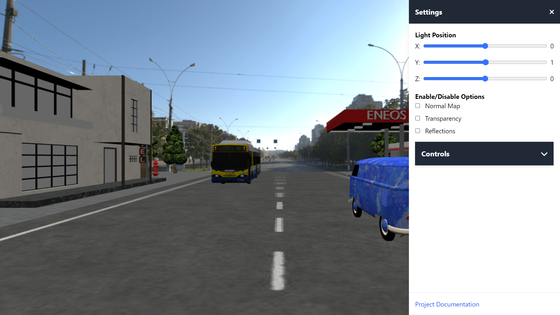 Il progetto offre la possibilità di attivare diverse tecniche di rendering avanzato per migliorare la qualità visiva della scena. Queste opzioni sono facilmente accessibili tramite il menu laterale e permettono all'utente di personalizzare l'esperienza sulla piattaforma in base alle proprie preferenze. Le tecniche di rendering avanzato adottate sono:
